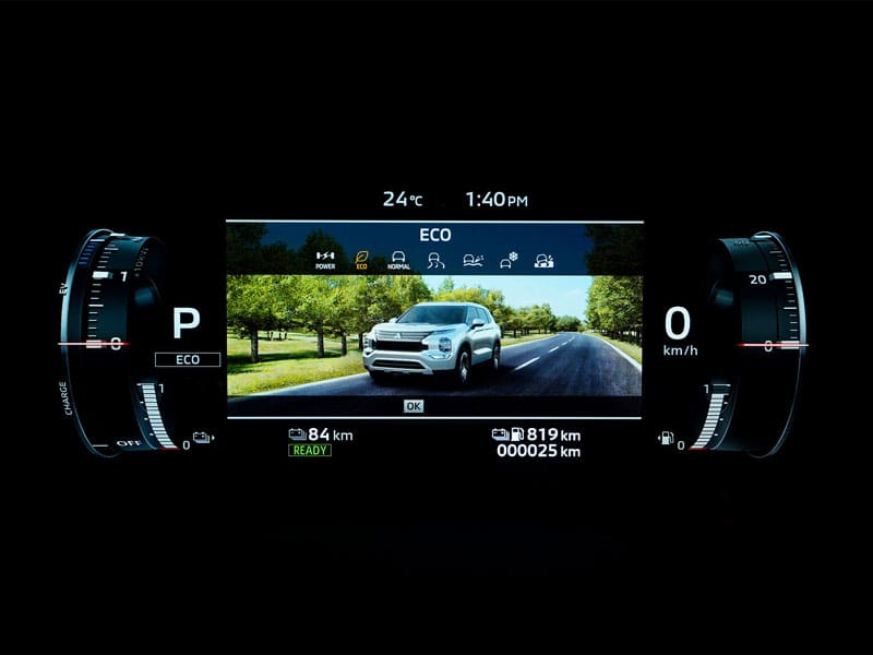 The new Outlander Plug-in Hybrid EV system automatically switches between electric and hybrid petrol power to deliver incredible on-demand performance and outstanding efficiency.